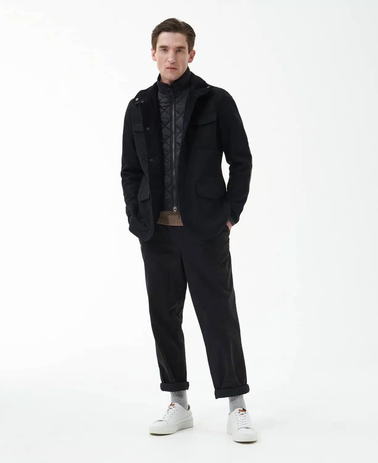 La veste en laine Barbour Trent raconte une histoire de savoir-faire premium et d’expertise ancestrale en matière de vêtements d’extérieur. Tissée à partir de pure laine pour offrir une chaleur inégalée, elle est dotée de bordures en cuir luxueuses et d’un intérieur en laine à chevrons pour une isolation supplémentaire. Un col montant moderne offre une protection contre le froid, tandis qu’un coupe-vent matelassé sur la patte de boutonnage aide à emprisonner la chaleur à l’intérieur. Comme touche finale pratique, quatre poches plaquées sur le devant complètent l’esthétique utilitaire.