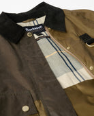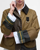 Confectionnée en coton ciré emblématique, elle se distingue par ses panneaux color block sur le corps et les manches, qui apportent une touche graphique et actuelle à ce modèle iconique.