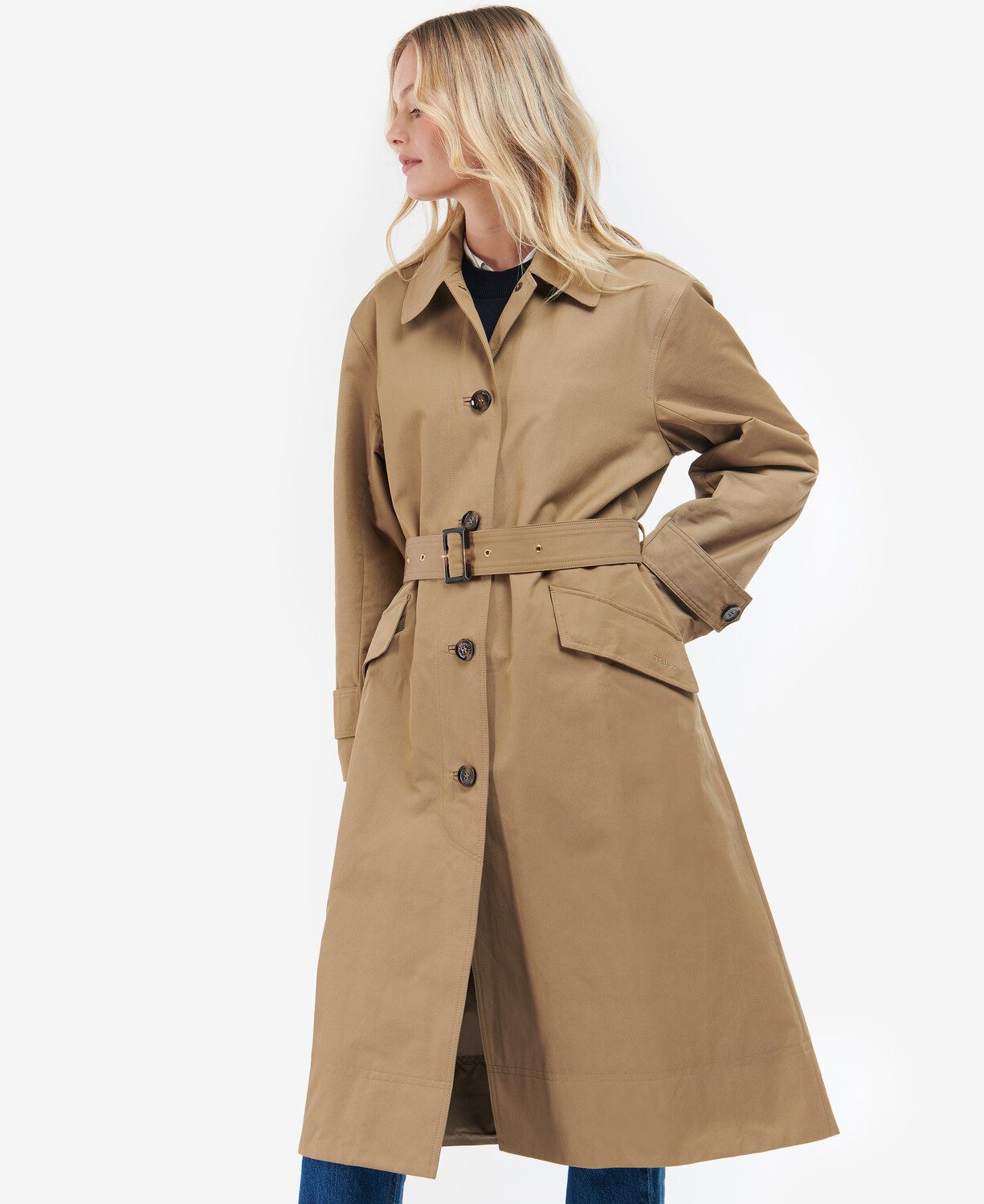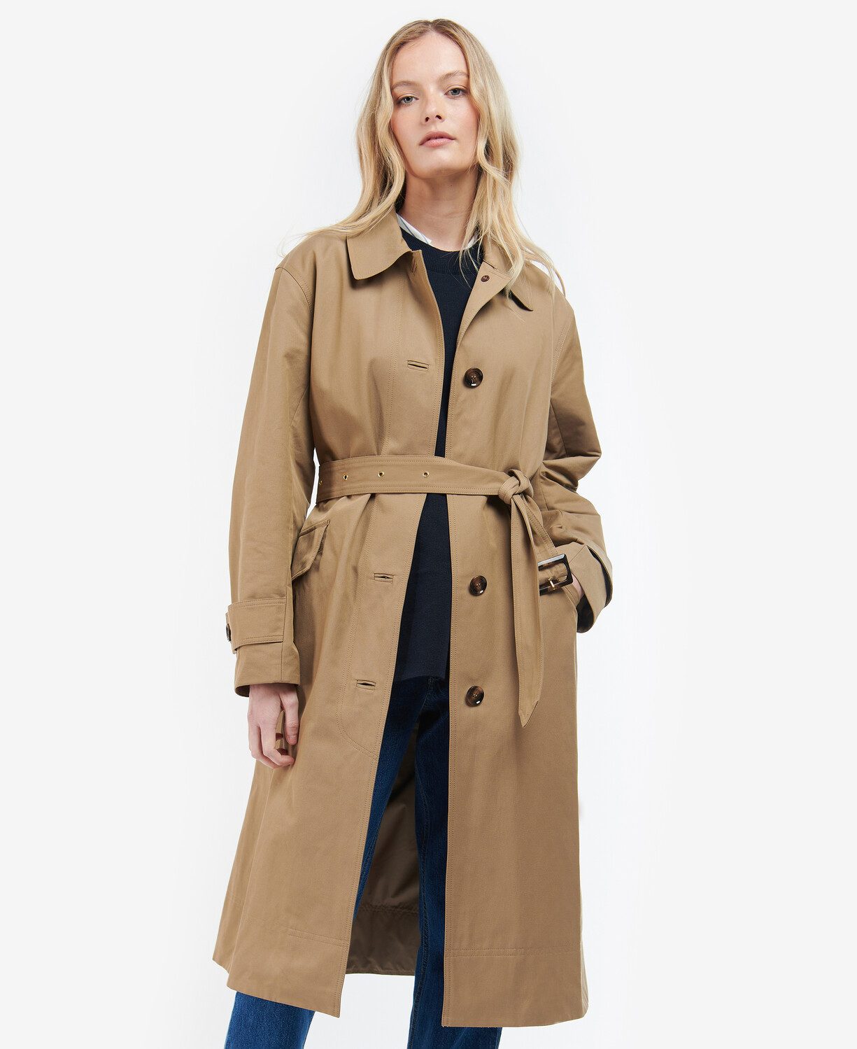 wPrésentant un design à simple boutonnage, la veste Barbour Opal Showerproof possède une coupe décontractée avec une ceinture pour un design trench classique. Cette veste est dotée d’une doublure en tartan, d’une ceinture et de la broderie Barbour sur la poche gauche.
